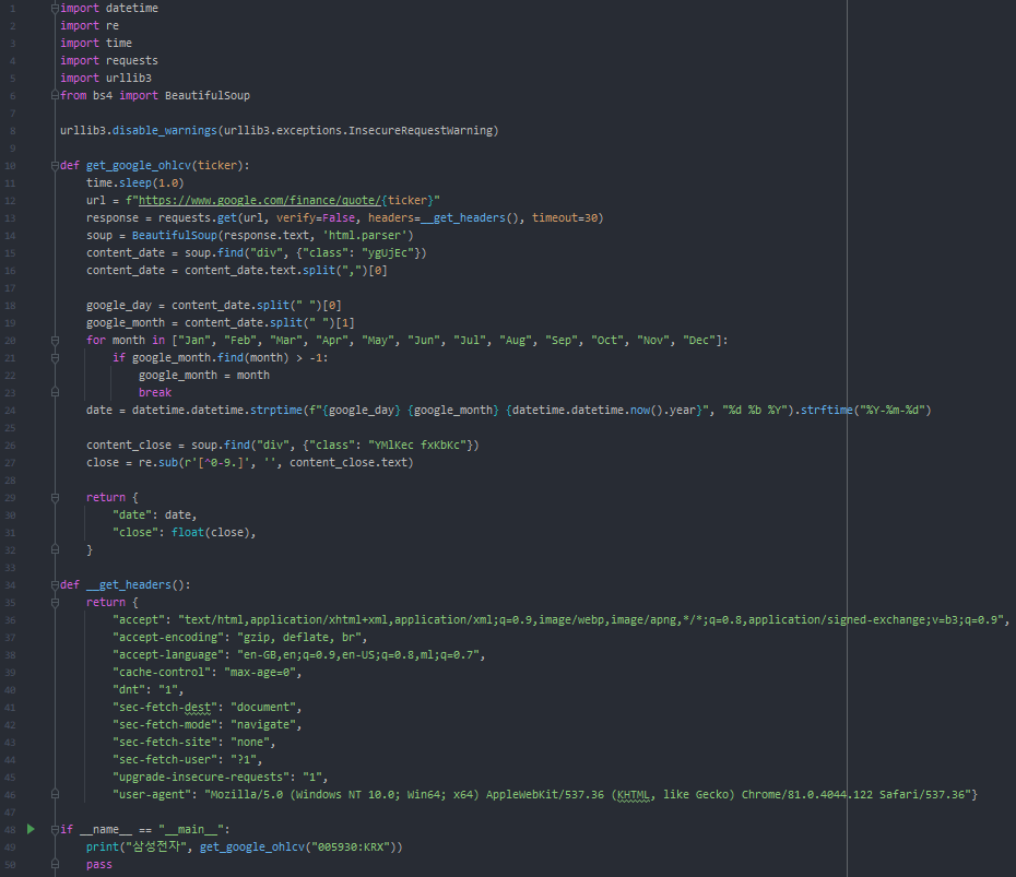 야후 파이낸스에서 주식 데이터 수집에 이어 이번엔 구글 파이낸스에서 주식 데이터를 수집해봅시다.