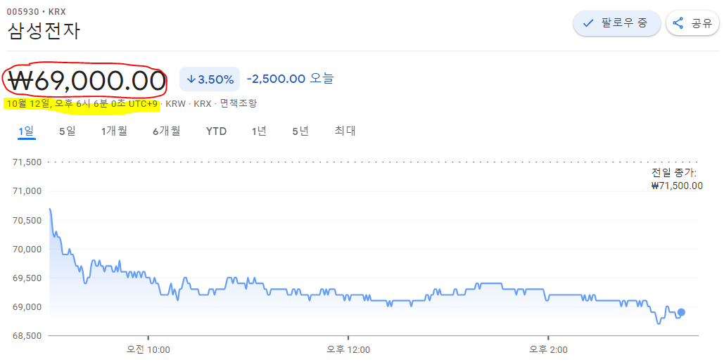 삼성전자 {'date': '2021-10-12', 'close': 69000.0}
