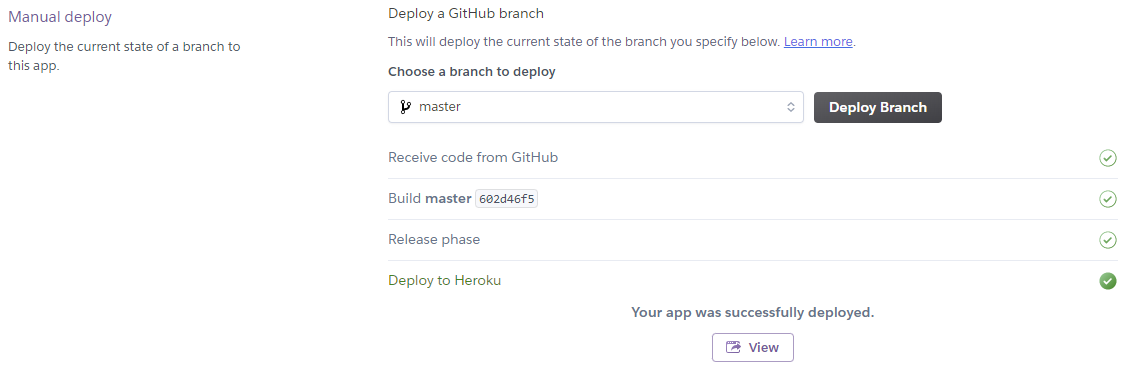 배포 후, proxy 서버가 잘 뜬 걸 확인할 수 있다. 접속 URL는 "[APP이름].herokuapp.com"이다.