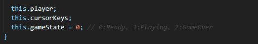 먼저 gameState 변수를 선언합니다. 0은 게임 준비, 1은 플레이, 2는 게임오버라고 정의하겠습니다.