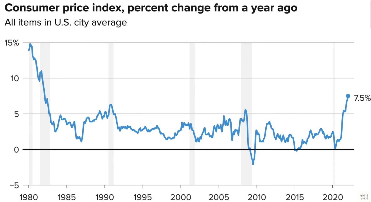 미국 CPI 7.5%로 40년만의 최대치