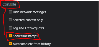 개발자 도구 -> 설정 -> Show timestamps
