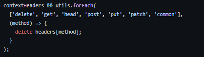 v1.x부터는 interceptor안에서 get, post, common 등의 헤더키에 바로 접근할 수 없다. 아래처럼 인터셉터가 동작하기 전에 delete, get, head, post, put, patch, common를 헤더에서 삭제한다.