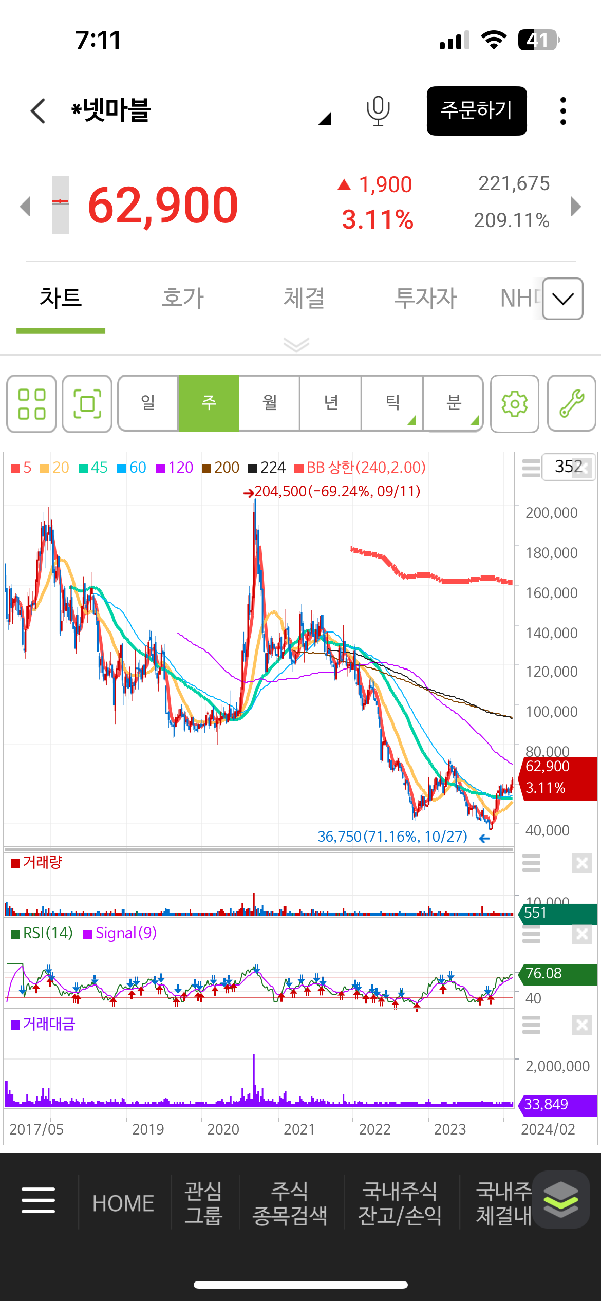 하지만 지금 주식을 매수하기에는 부담스러운 자리다. 관종에만 넣어두고 지켜보자.