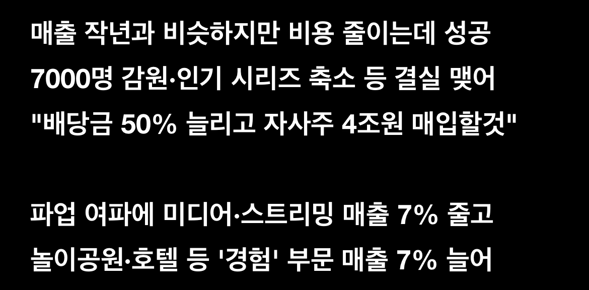 그리고 파업 여파라고는 하지만 어쨌든 콘텐츠 영역에서 매출이 줄었다. 이게 빨리 턴어라운드 해야 할 텐데