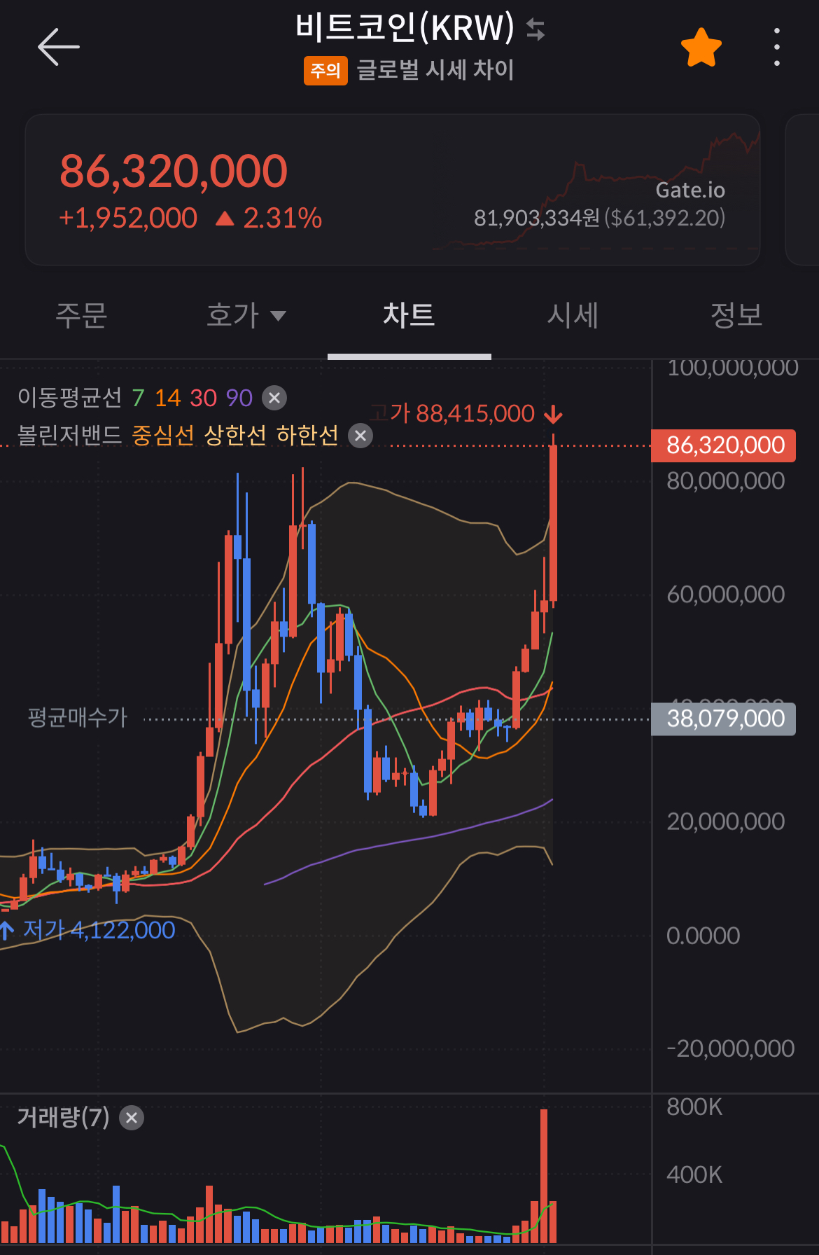 예상대로 한국 비트코인은 전고점 뚫었다.