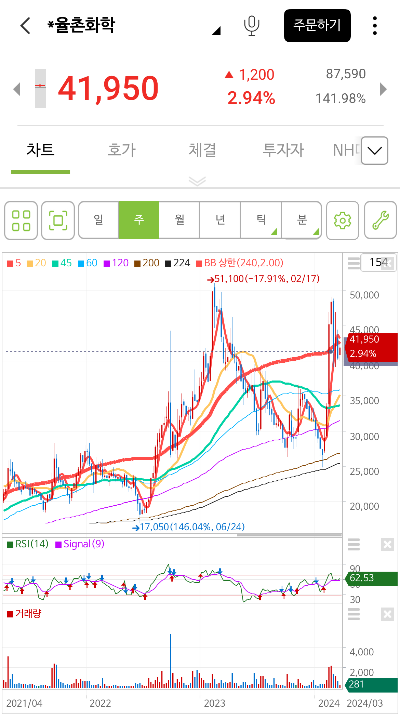 일봉이랑 주봉 차트를 보면 거래량이 아주 씨가 말라있다. 며칠동안 주포가 있나 하고 미끼를 던져보는데 반응이 없다.